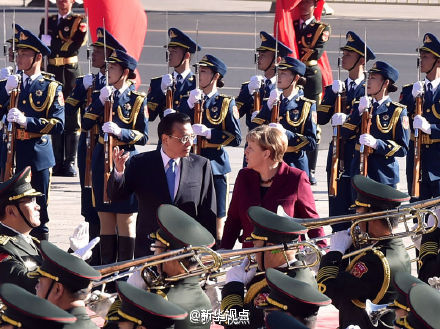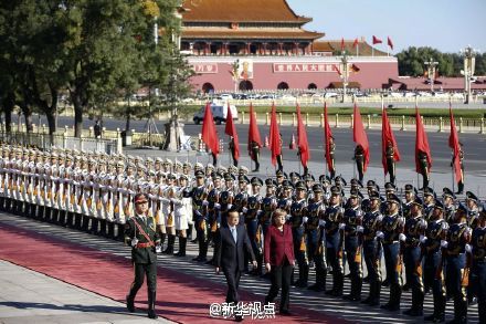 新华网北京10月29日电 国务院总理李克强29日上午在人民大会堂东门外广场举行仪式,欢迎来华进行正式访问的德国总理默克尔。