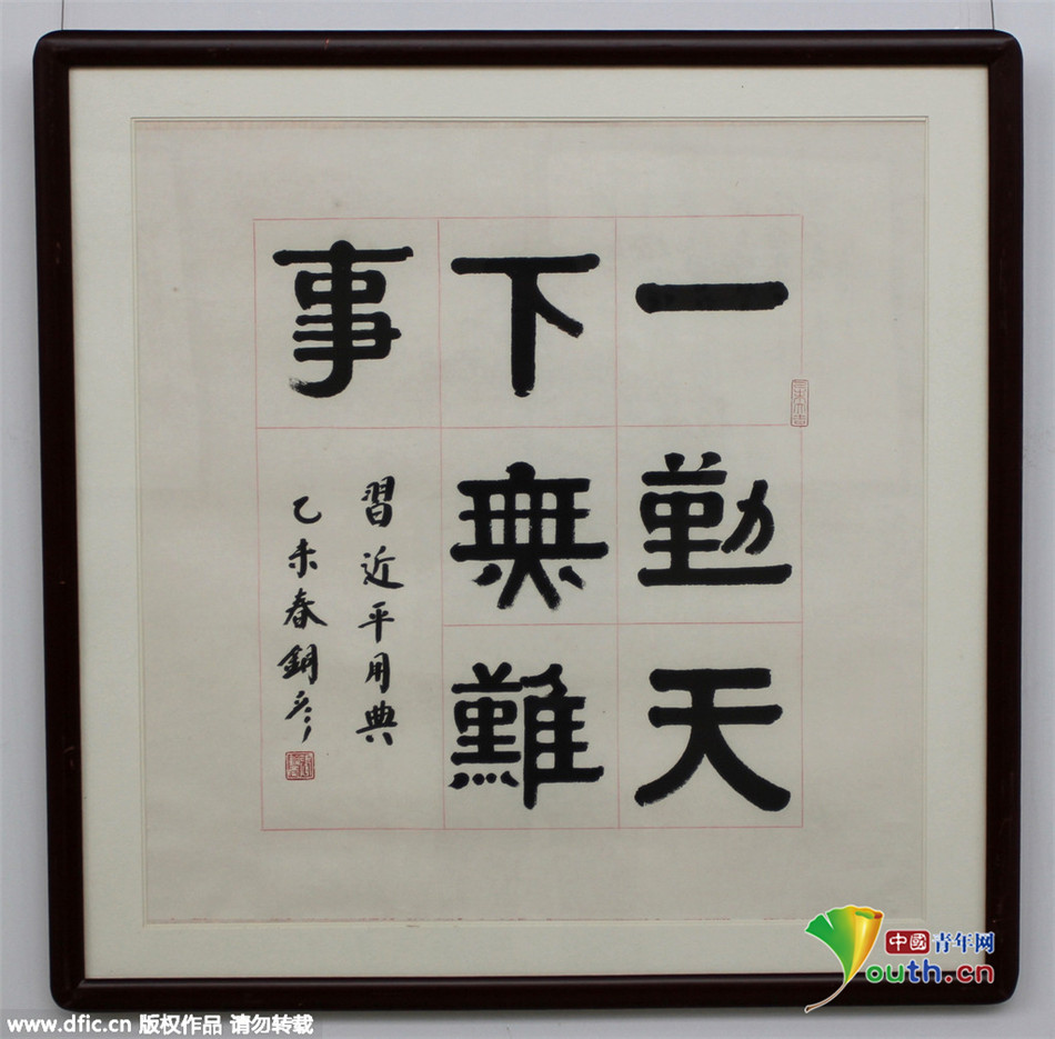 2015年10月30日,湖北武汉,“习近平用典”全国名家书法特别展在武汉经济技术开发区市民服务中心展出。古典名句,是历史长河中历经砥砺的智慧结晶,是传承中华民族优秀传统文化的经典载体。本次展览,邀请全国百余位书法名家,书写习近平总书记系列重要讲话和文章中引用的经典名句,内容涉及到敬民、为政、立德、修身、劝学、廉政等诸多方面,主题鲜明,饱含深情,既让人感悟中华传统文化的博大精深,又能领略习近平总书记的独特语言风格和人格魅力,是一次“笔墨当随时代”的艺术践行。
