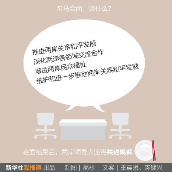会面结束后,两岸领导人还将共进晚餐。
