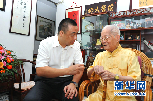 首届“国医大师”获得者邓铁涛教授今年已100岁高龄,是广州中医药大学终身教授,1938年9月起从事中医临床工作,70多年来,精心研究中医理论,极力主张“伤寒”“温病”统一辨证论治,为全国老中医药专家学术经验继承工作指导老师、广东省著名老中医,国家级非物质文化遗产传统医药项目代表性传承人。