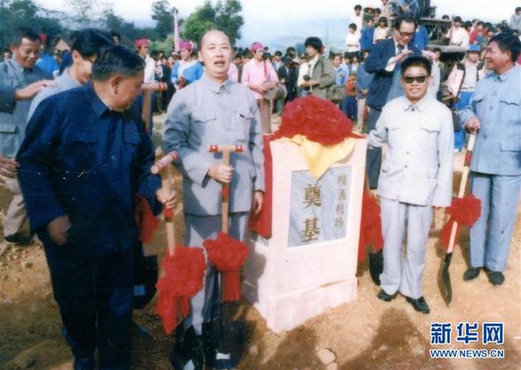 这是翻拍的老州长召存信(左二)1986年在西双版纳嘎洒机场奠基时的照片。 新华社发