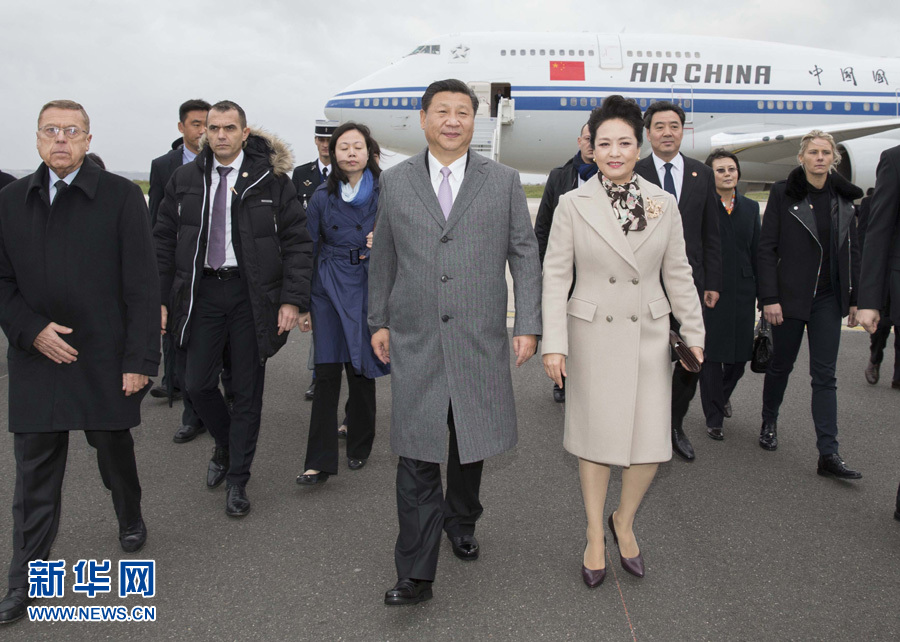 11月29日,国家主席习近平抵达法国首都巴黎,应法兰西共和国总统奥朗德和气候变化巴黎大会主席法比尤斯邀请,出席气候变化巴黎大会开幕活动。这是在巴黎奥利国际机场,习近平和夫人彭丽媛受到法国政府高级官员热情迎接。新华社记者 黄敬文 摄