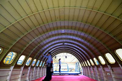 图为由中航工业洪都研制的C919大型客机前机身大部段在江西南昌成功下线(2014年5月15日摄)。 新华社记者 陈子夏 摄