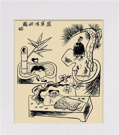 生于1900年的张光宇是中央工艺美术学院创建之初的老院长、教授。他最为人知的身份是连环漫画《西游漫记》的作者、动画片《大闹天宫》的美术设计。尽管张光宇在漫画、动画、电影美术等多个领域有深远影响,但在许多文化老人看来,张光宇在中国式现代艺术发展中所起到的作用并没有得到应有的重视。而近两三年来,学术界已经开启了对张光宇艺术的重新追溯之旅。此次拍卖也是从市场层面对张光宇艺术成就的另一种回应。本次拍卖将集中呈现张光宇一系列水彩、水墨及漫画创作,其中包括针砭时事的辛辣《岁寒清供图》(下图),民间广泛传播的《神笔马良》,水墨作品《孙悟空》等。(记者 李健亚)