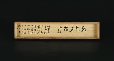 此次上拍的鲁迅书法作品内容为四句偈语:“放下屠刀,立地成佛;放下佛经,立地杀人。”连署名在内共十八个毛笔字书于24×20cm的色纸之上,后装裱成日式条幅,并配有长型木盒(下图),盒盖内又书有如下毛笔字:朝花夕拾安三七十七。北京匡时书画部经理晏旭告诉记者,鲁迅曾在《准风月谈-归厚》中写过“放下官印,立地念佛”而又“放下念珠,立地做官”。根据该文与此次书法的文句,鲁迅研究者推测此次上拍的内容书写年代大致在1927年-1931年之间。
