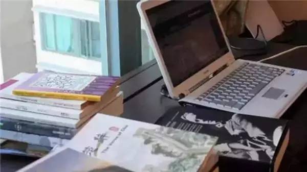 ▲简洁,是书房的主要特色,电脑旁边是《楚辞》