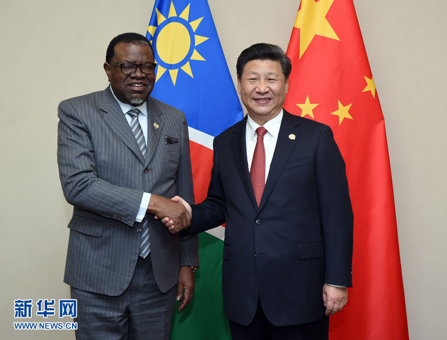 12月4日,国家主席习近平在约翰内斯堡会见纳米比亚总统根哥布。 新华社记者 张铎 摄