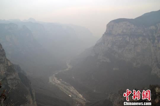站在上云台景区的山顶,遥望山下云台山景区。郑书文表示,以老谭沟河为界,云台山景区的“小寨沟”等景点均属于山西境内。他质疑该景区存在“越界开发”的问题。