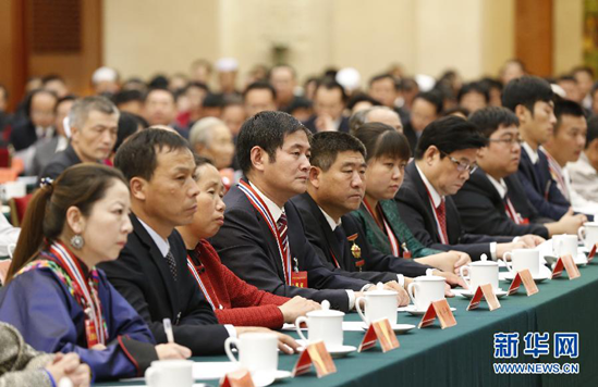 2月11日,2015年军民迎新春茶话会在京举行。会前,党和国家领导人习近平、李克强、刘云山、张高丽等亲切会见全国双拥模范代表。新华社记者 李刚 摄