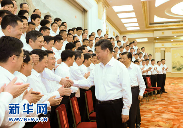 6月30日,党和国家领导人习近平、刘云山等在北京人民大会堂会见全国优秀县委书记。 新华社记者 兰红光 摄