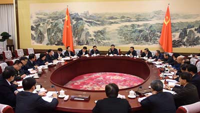 按照党中央关于在县处级以上领导干部中开展“三严三实”专题教育的部署,中共中央政治局于12月28日至29日召开专题民主生活会,围绕中央政治局带头践行严以修身、严以用权、严以律己、谋事要实、创业要实、做人要实的要求,联系中央政治局工作,联系党的十八大以来中央抓作风建设的实际,联系自身执行中央八项规定的实际,联系严格教育管理家属子女和身边工作人员的实际,联系周永康、薄熙来、徐才厚、郭伯雄、令计划等人案件的深刻教训,进行党性分析,开展批评和自我批评,总结党的十八大以来作风建设的实践,研究加强党风廉政建设、加强中央政治局自身建设的措施。