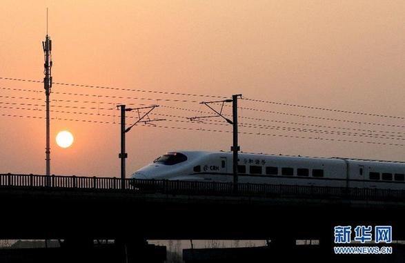 12月31日,一辆动车组列车行驶在郑机城际铁路上。当日,郑(州)机(新郑机场)城际铁路正式开通运营,从郑州市区到新郑机场最快仅需19分钟。 新华社记者 李安 摄