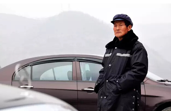 王宪军在停车场执勤。2015年5月1日起,64岁的王宪军成为公司停车场的管理员,过上了和城里上班族一样朝九晚五的生活。新华社记者 梁爱平 摄