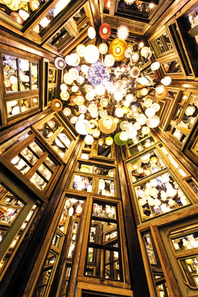 一般情况下,只有当观众参观完准备往回走时才会发现原来有扇门。打开一看里面又是另一番天地,辉煌的井内有无数的镜子,形成的却是繁华的虚空,“而当你走出画廊到了现实世界里,而那才是真正的繁华的虚空。”