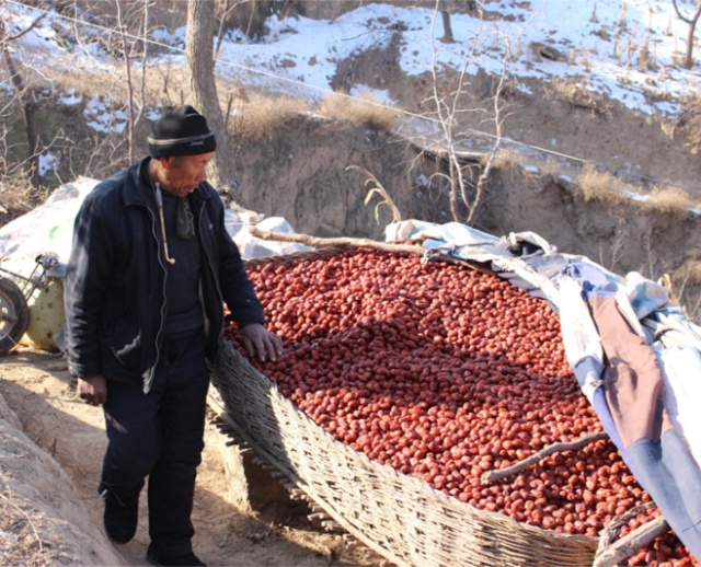 “这些枣树也是我们世世辈辈栽下的,听我们祖上讲:从西周就开始在黄河沿岸世世代代种植。因为枣树耐旱,我们这样的黄土高原适合种这样的‘铁杆庄稼’。我们临县这的枣好,核小、皮薄、肉厚饱满,个头均匀、完整,酸甜适口,试试握一把,根本不会相互粘连。”