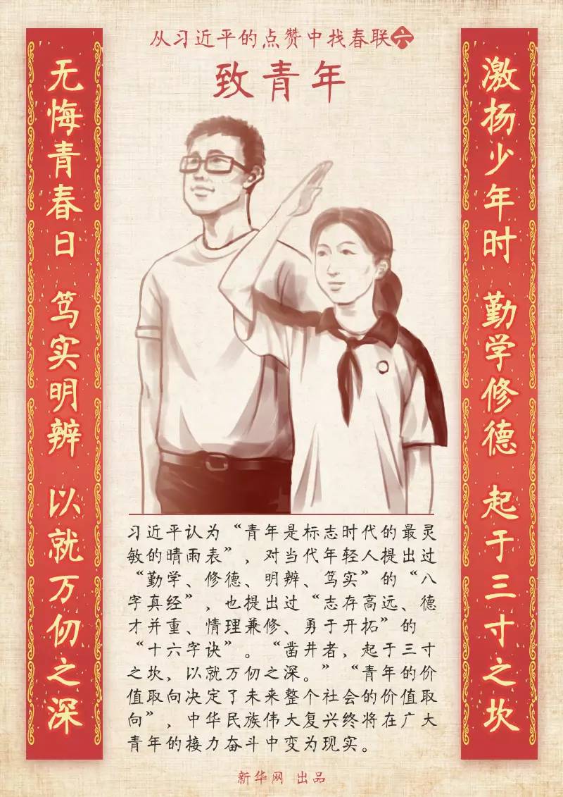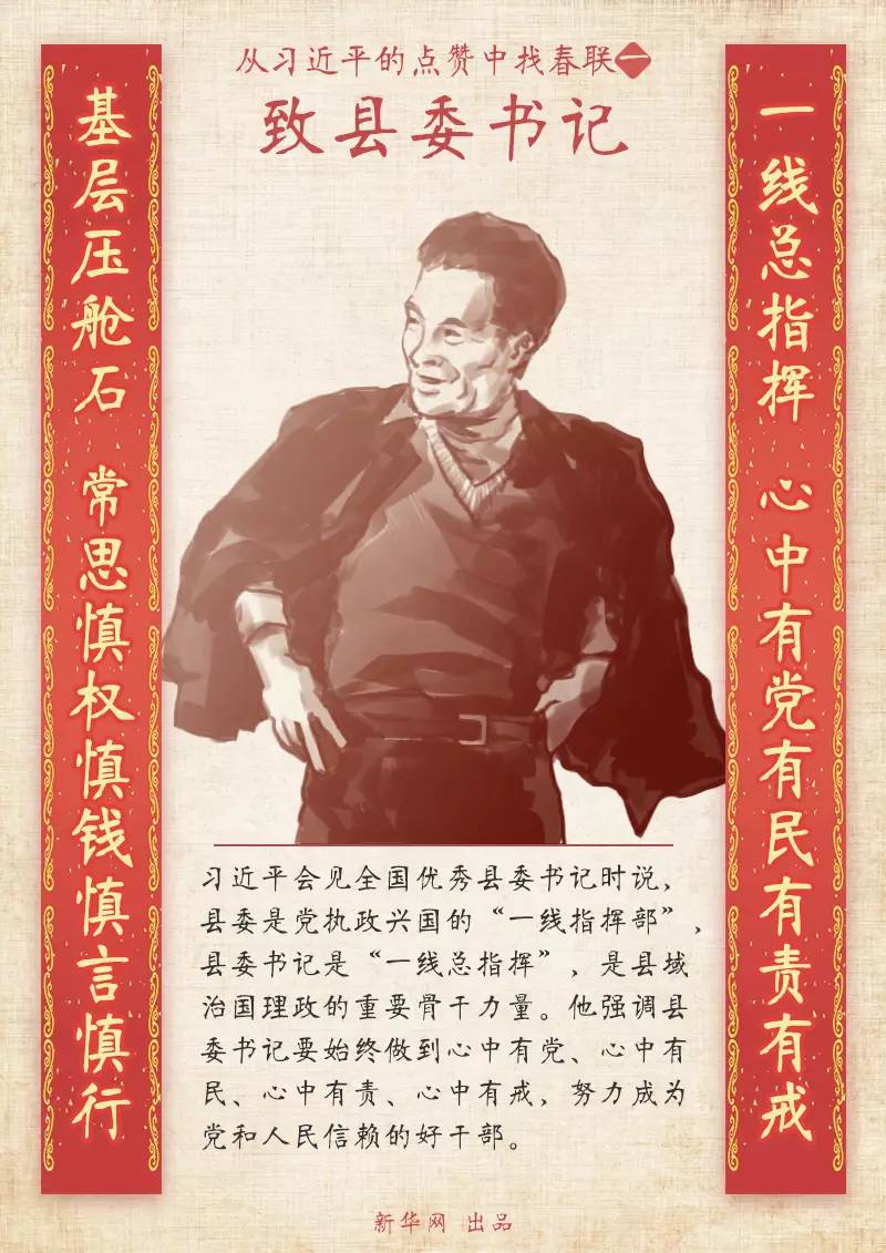 暂时没有头绪也没关系,新华网“学习进行时”从习近平讲话中摘取经典、集结成联,致敬那些辛勤努力、得到习总书记“点赞”的人。这六副春联或许能够为你提供一些参考。
