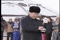 2014年春节前夕,习近平到内蒙古自治区锡林浩特市宝力根苏木(乡),用蒙古族传统祈福方式为少数民族同胞祈福