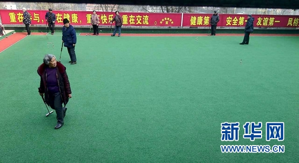 沱桥下的门球场,也是老人们钟爱的“娱乐”场所。这不,这块场地上就有好几位正打着门球呢(2月5日摄)。 新华网记者 黄锐 摄