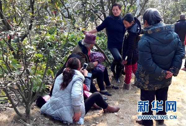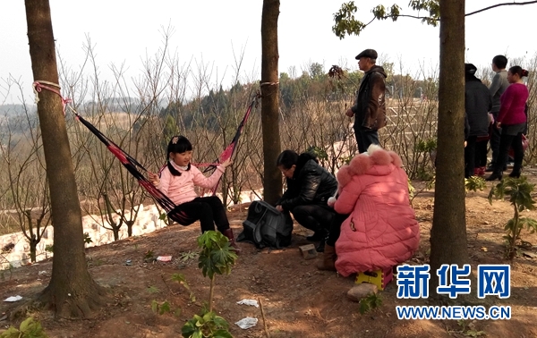 走累了,随便找块地,就地而坐(2月8日摄于鳌山公园)。 新华网记者 黄锐 摄