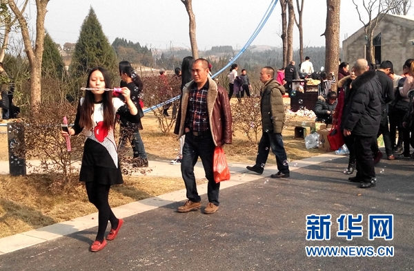 鳌山公园里,四处都见吹出的泡泡。这吹泡泡的人,可不一定就是小孩儿哟(2月8日摄)。 新华网记者 黄锐 摄