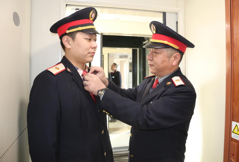 父亲王太平,邯郸机务段汽车司机,之前他主要负责接送检修工人到外点、沿线抢修机车故障及运送机车配件。儿子王少龙是一名机车电工,平时主要负责HXD2、HXD2B型机车电器、电路部分故障的维修。而2016年春运,让他们暂时实现了身份的转变,由服务旅客的“幕后”走到了“台前”,“客串”了一次列车乘务员。