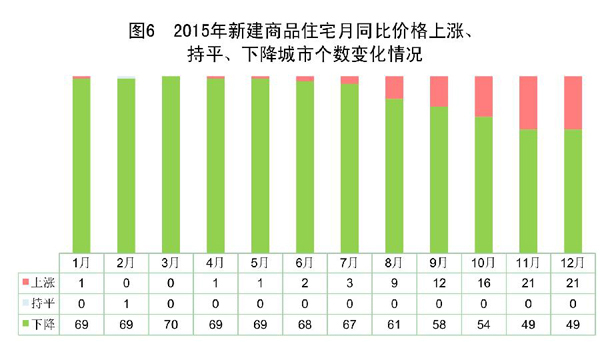 年末70个大中城市新建商品住宅销售价格月同比上涨的城市个数为21个,比年初增加20个;下降的为49个,减少20个。