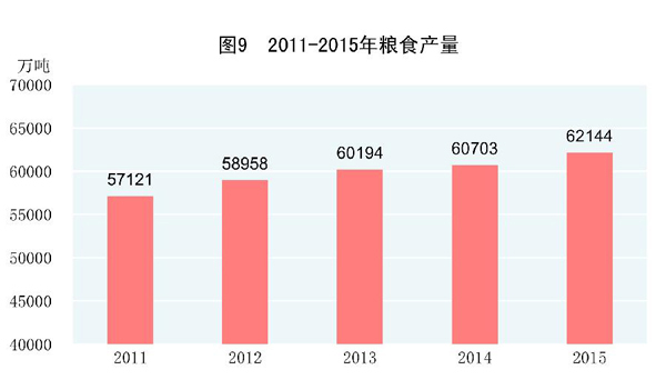 全年粮食产量62144万吨,比上年增加1441万吨,增产2.4%。其中,夏粮产量14112万吨,增产3.3%;早稻产量3369万吨,减产0.9%;秋粮产量44662万吨,增产2.3%。全年谷物产量57225万吨,比上年增产2.7%。其中,稻谷产量20825万吨,增产0.8%;小麦产量13019万吨,增产3.2%;玉米产量22458万吨,增产4.1%。