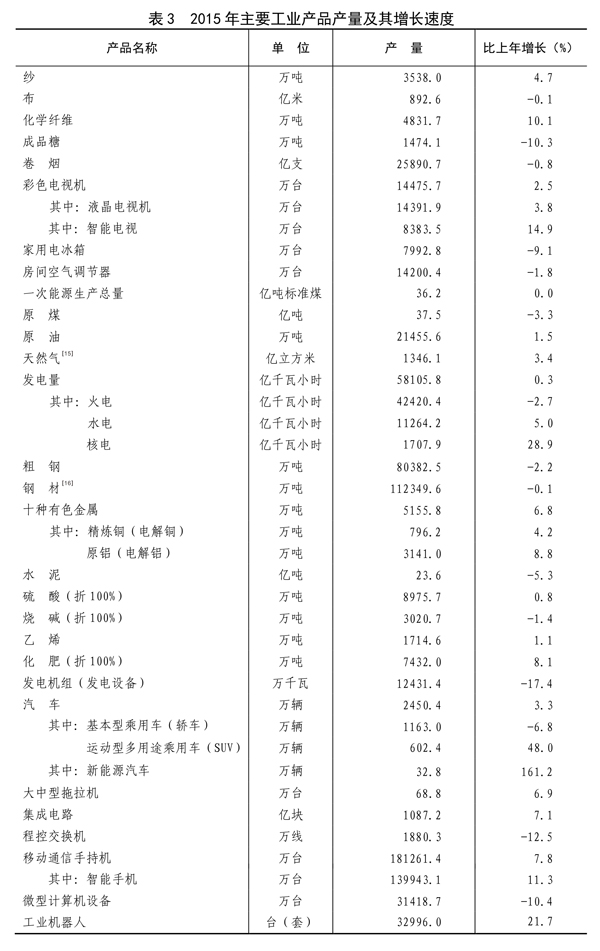 授权发布:中华人民共和国2015年国民经济和社会发展统计公报