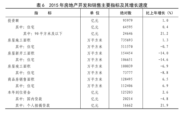 全年房地产开发投资95979亿元,比上年增长1.0%。其中,住宅投资64595亿元,增长0.4%;办公楼投资6210亿元,增长10.1%;商业营业用房投资14607亿元,增长1.8%。