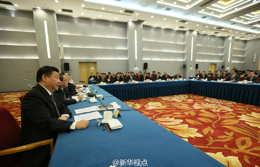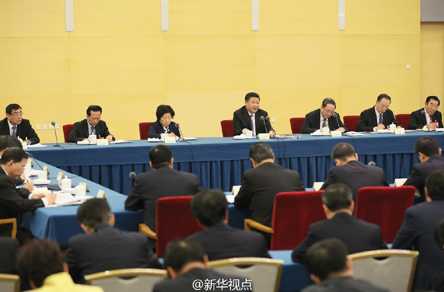 新华网北京3月4日电 3月4日下午,中共中央总书记、国家主席、中央军委主席习近平看望出席全国政协十二届四次会议民建、工商联界委员并参加联组讨论。