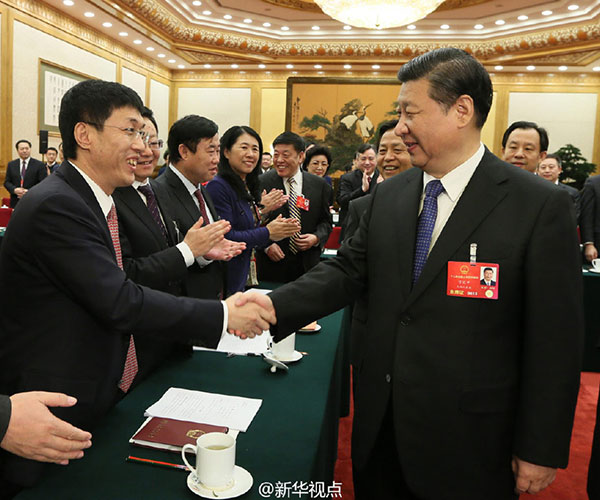 3月7日,中共中央总书记、国家主席、中央军委主席习近平参加十二届全国人大四次会议黑龙江代表团的审议。