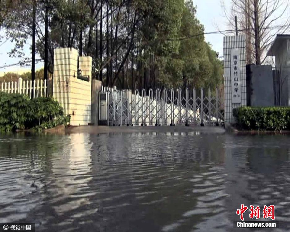 南京一学校门前上演“水漫金山”