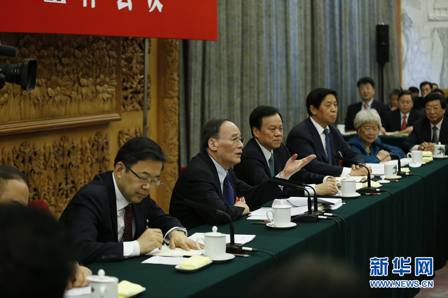 3月11日,中共中央政治局常委、中央纪委书记王岐山参加十二届全国人大四次会议贵州代表团的审议。 新华社记者 鞠鹏 摄
