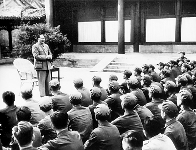 一九五五年五月十四日毛泽东在颐年堂院内向下乡调查研究的警卫战士讲话