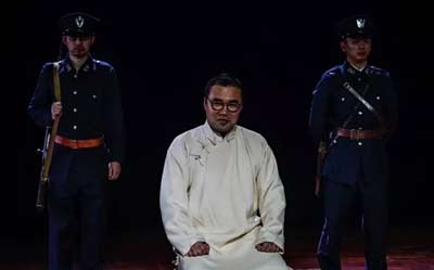 3月30日,南京市话剧团在排练话剧《雨花台》。图为冷少农(张树平饰)在剧中。新华社记者 李响 摄