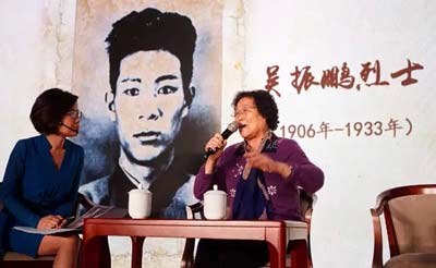 4月2日,南京雨花台烈士纪念馆,雨花台烈士吴振鹏女儿王行(右)在雨花台英烈亲属口述史征集活动现场讲述历史。新华社记者 李响 摄