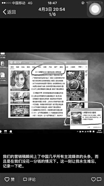 此事也有网友怀疑为商业营销。北青报记者在该编辑的朋友圈中看到,4月3日,该编辑发布消息提到“11辆豪车在川藏线自驾 6辆报废”一事时称“我们的营销稿瞬间上了中国几乎所有主流媒体的头条”,并晒出了部分网站弹窗推送的截图。此外,该公号在4月4日发表标题名为“看到11辆豪车进藏,五菱宏光笑了”的文章,题注中称“五菱一出手,法拉利靠边走”,这些内容均被质疑借机营销。