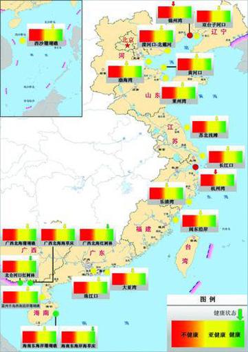 海洋生态系统的健康状况分为健康、亚健康和不健康三个级别: