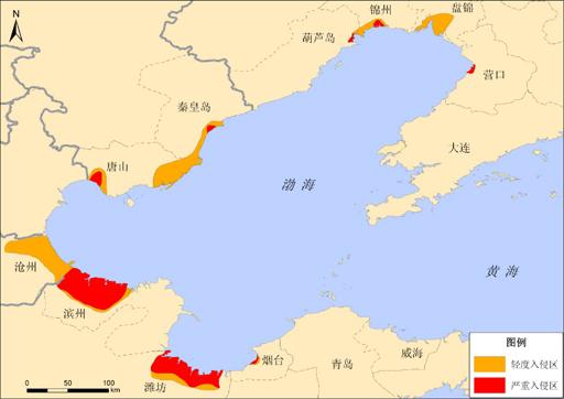 环渤海滨海地区海水入侵现状分布图