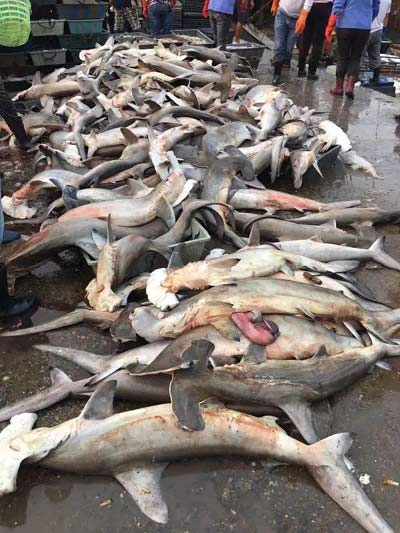 当天上午,一名网友在微信朋友圈发出相关信息。从图片上看,百余条濒危锤头鲨在三亚市水产码头被砍剁加工,公开出售,已经开膛破肚的鲨鱼堆积在一起,场面令人震惊!