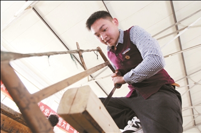 日前,记者慕名来到休宁一职高,走进徽州传统木工班实训车间,余腾正在学习制作子孙椅。从小跟在爷爷身后,帮爷爷制作家具,从劈木、凿眼到雕花、上漆,每一步他都记得很清楚。2015年已经读了一年高中的他,由普高转到这里来学习传统木工。“因为喜欢,每天在车间里呆多久都不觉得累,而且变得不像以前那么浮躁了,我做得很开心。”余腾说。他默默地把徐长军作为自己的目标,希望可以像徐长军一样,作为一名“工匠”走上世界舞台。