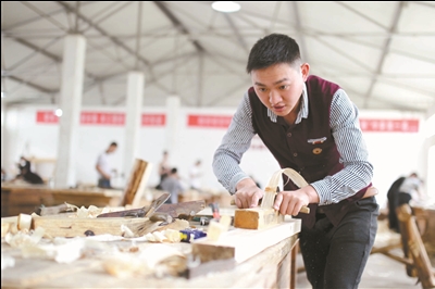 墨斗、角尺、刨子、手摇钻……传统的木工工具,在安徽省休宁县第一高级职业中学徽州传统木工班新一代“鲁班”手中被赋予新的生命力。