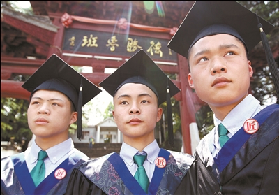 在古徽州,能做一张八仙桌和两把太师椅说明可以出师了,徽州传统木工班就把这当作学生的“毕业论文”。2005年长江平民教育基金会还创造性地为首届毕业生颁发“匠士学位”,并延续至今。每到毕业时,完成学业的“新鲁班”们头戴匠士帽、身穿匠士服,满怀激动与喜悦,等待着老师一个一个地授予他们“匠士学位”。据了解,从2003年至今,休宁一职高徽州传统木工班已经培养出近500名现代“匠士”。