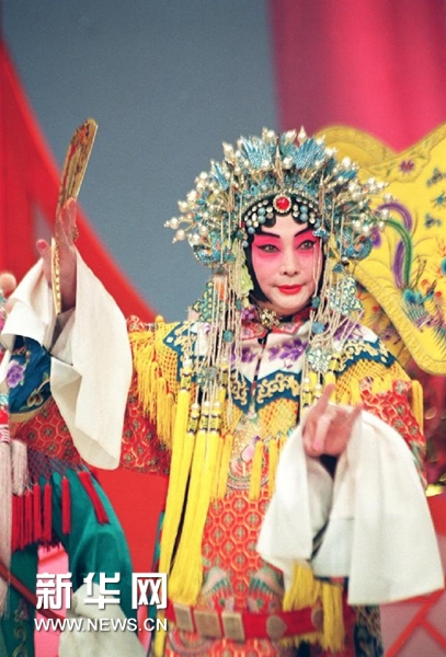 这是梅葆玖在中央电视台1994年元宵晚会上演出(资料照片)。 新华社发