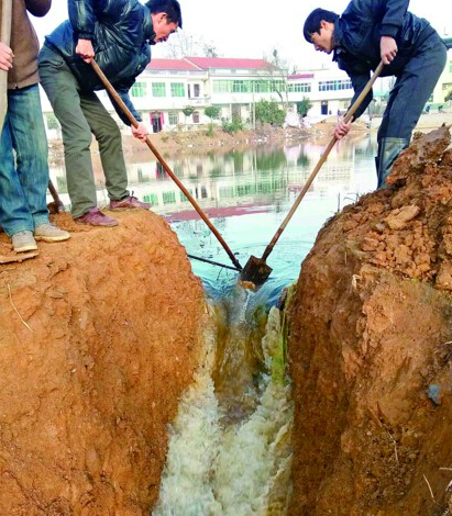 两台大型挖掘机已经开进塆前坌田,捞泥堆岸,准备把这里开辟成一个大水塘。在施工现场,周玉锋表示,几天后,这里的坝体将会合围,并形成塆里最大的池塘,日后这里便是村民集体取水的地方。