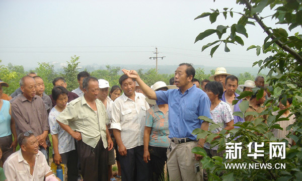 多年来,李保国教授每年在山里“务农”200多天。图为李保国为果农讲授技术。(资料图片)