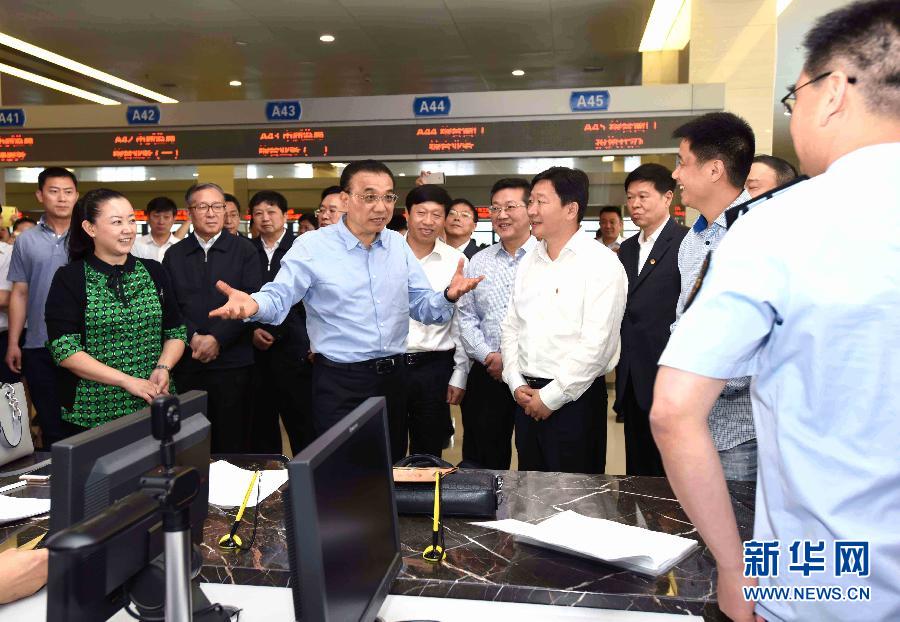 5月23日至24日,中共中央政治局常委、国务院总理李克强在湖北考察。这是5月23日,李克强在十堰市民服务中心询问“放管服”改革落实情况。 新华社记者饶爱民摄
