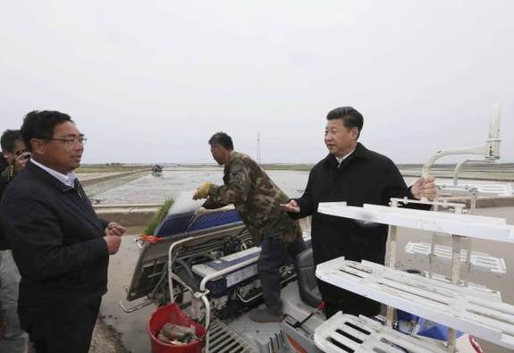 5月24日上午,习近平来到黑龙江省抚远市玖成水稻种植专业合作社,了解合作社土地流转和采用先进种植技术提高水稻产量效益等情况。