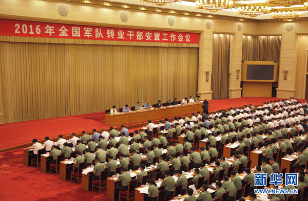 6月7日,2016年全国军队转业干部安置工作会议在北京举行。会议传达了中共中央总书记、国家主席、中央军委主席习近平关于深化国防和军队改革期间军队转业干部安置工作的重要讲话,对学习贯彻讲话精神,做好军队转业干部安置工作作出部署。中共中央政治局常委、中央书记处书记刘云山出席会议并讲话。 新华社记者 李刚 摄