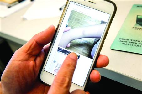 家长向记者出示用手机拍摄的孩子手臂上的瘀青。记者 张佳琪